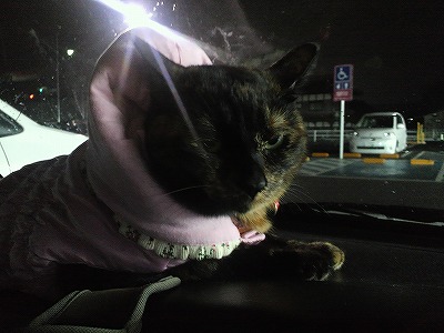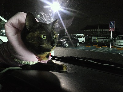 夜に買い物に連れて行ってもらったにゃあ