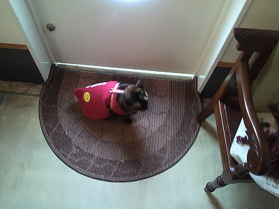 で、ご主人に連れられて散歩にゃあ